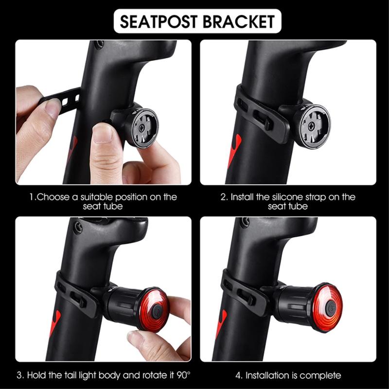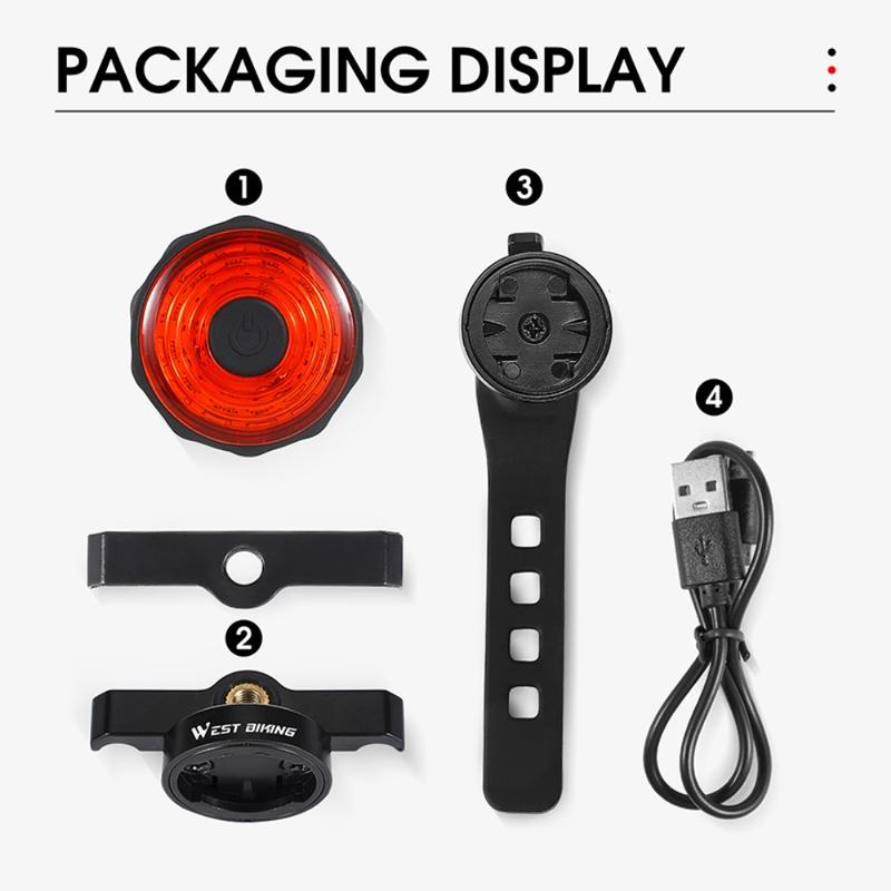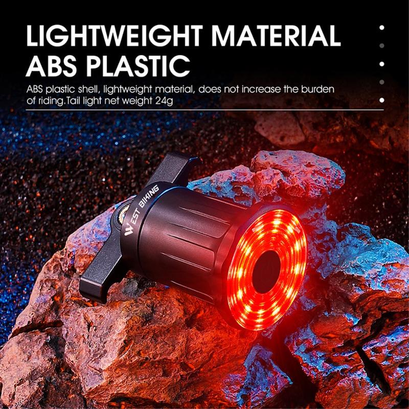 WEST BIKING YP0701317 sædehynde / sadelpindsmontering USB-opladningscykel LED-baglygte vandtæt smart bremse induktion cykling advarsel baglygte