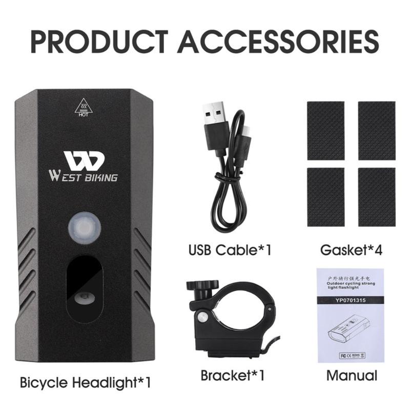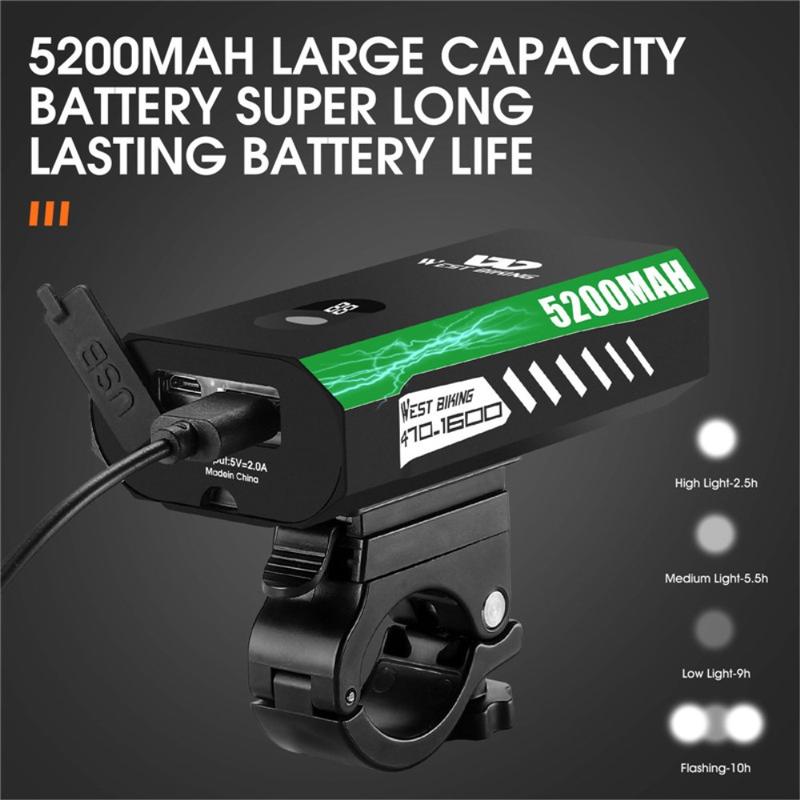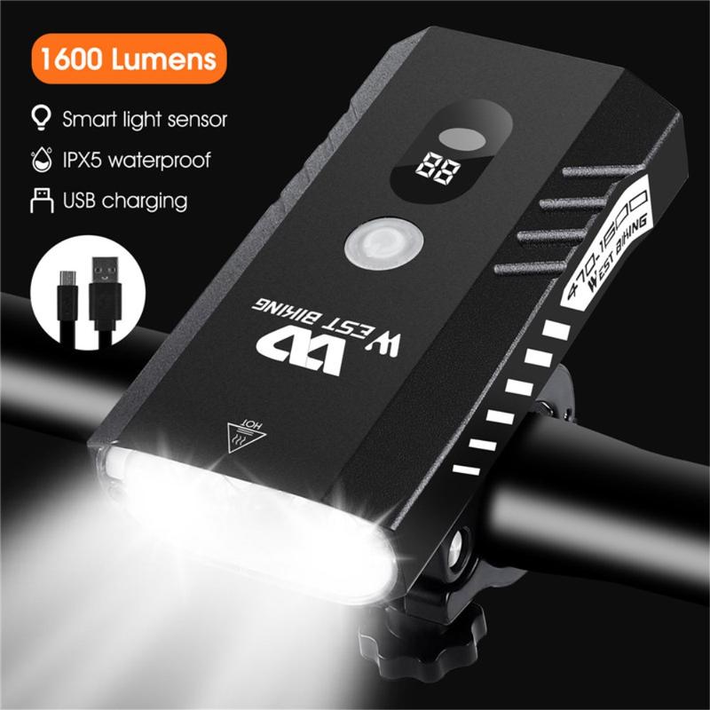 WEST BIKING YP0701329 1600LM lysstærk LED cykel forlygte cykel nat cykel sikkerhedslygte lommelygte