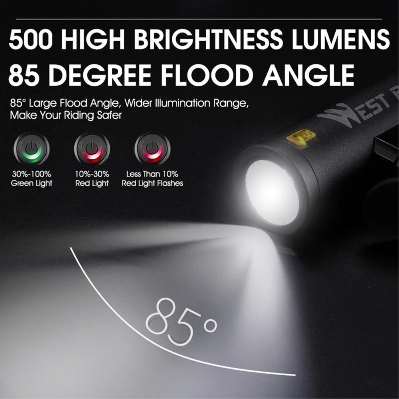 WEST BIKING YP0701332 500LM cykel lys LED forlygte nat cykling cykel sikkerhed lommelygte - sort