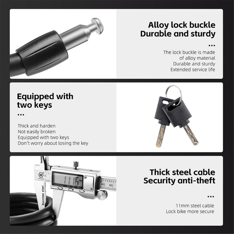 11 mm fortykket stålkabellås, høj sejhed, sikker og pålidelig, anti-knocking, anti-saw og anti-smash
