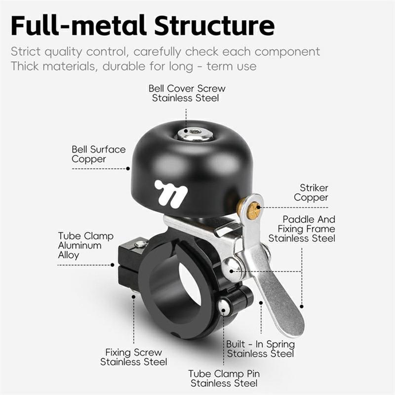 Denne ringeklokke er konstrueret af kobber- og aluminiumslegeringer af høj kvalitet og sikrer langvarig holdbarhed. Hver komponent er konstrueret med henblik på styrke og stabilitet, hvilket gør den til et pålideligt tilbehør til daglig pendling og barske bjergstier.