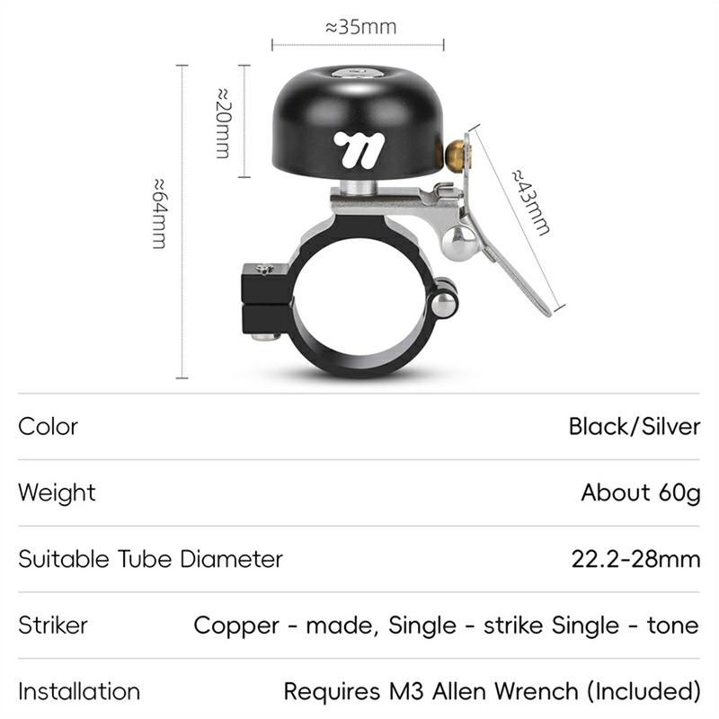 Denne ringeklokke er konstrueret af kobber- og aluminiumslegeringer af høj kvalitet og sikrer langvarig holdbarhed. Hver komponent er konstrueret med henblik på styrke og stabilitet, hvilket gør den til et pålideligt tilbehør til daglig pendling og barske bjergstier.