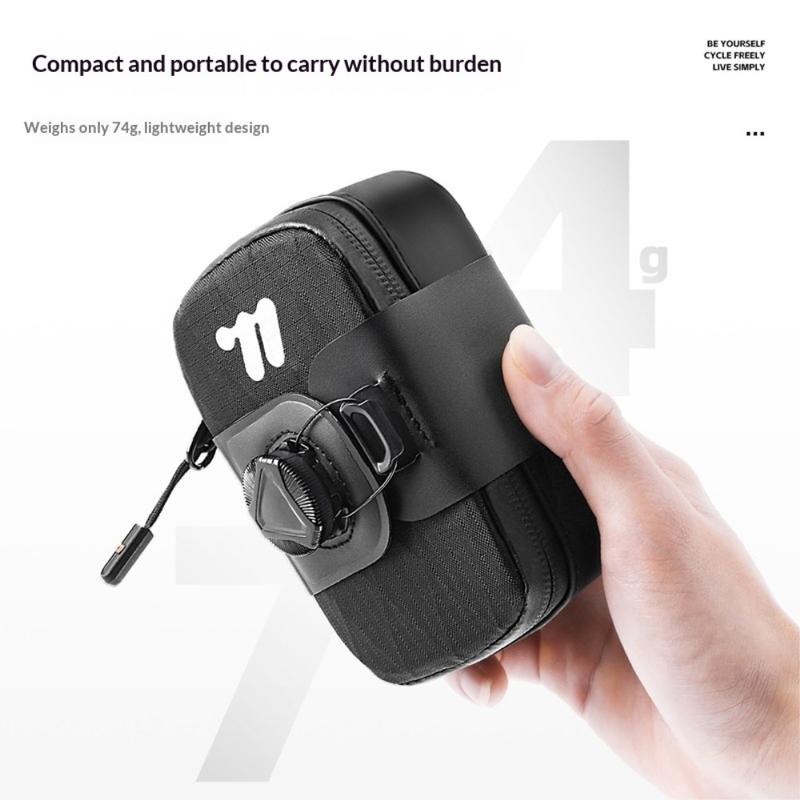 West Biking YP0707431 0.2L cykelsadelpose er en kompakt og ultralet opbevaringsløsning designet til cyklister, der værdsætter stabilitet og minimal vægt. Med en selvlåsende drejemekanisme og et hurtigudløsersystem monteres denne bagagepose sikkert under din sadel uden at vugge eller lave støj. Den er fremstillet af slidstærkt UHMWPE ripstop-stof og tilbyder fremragende ridsefasthed og langvarig ydeevne til både landevejs- og mountainbiking.