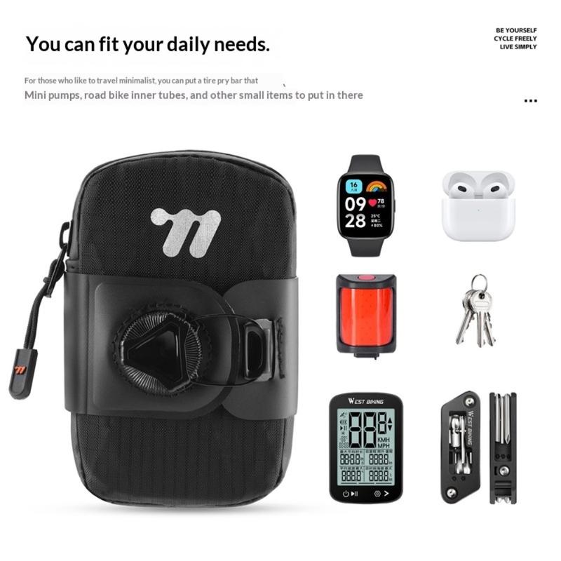 West Biking YP0707431 0.2L cykeltaske - hurtigudløser, selvlåsende opbevaringspose til bagenden til landevejs- og mountainbikes