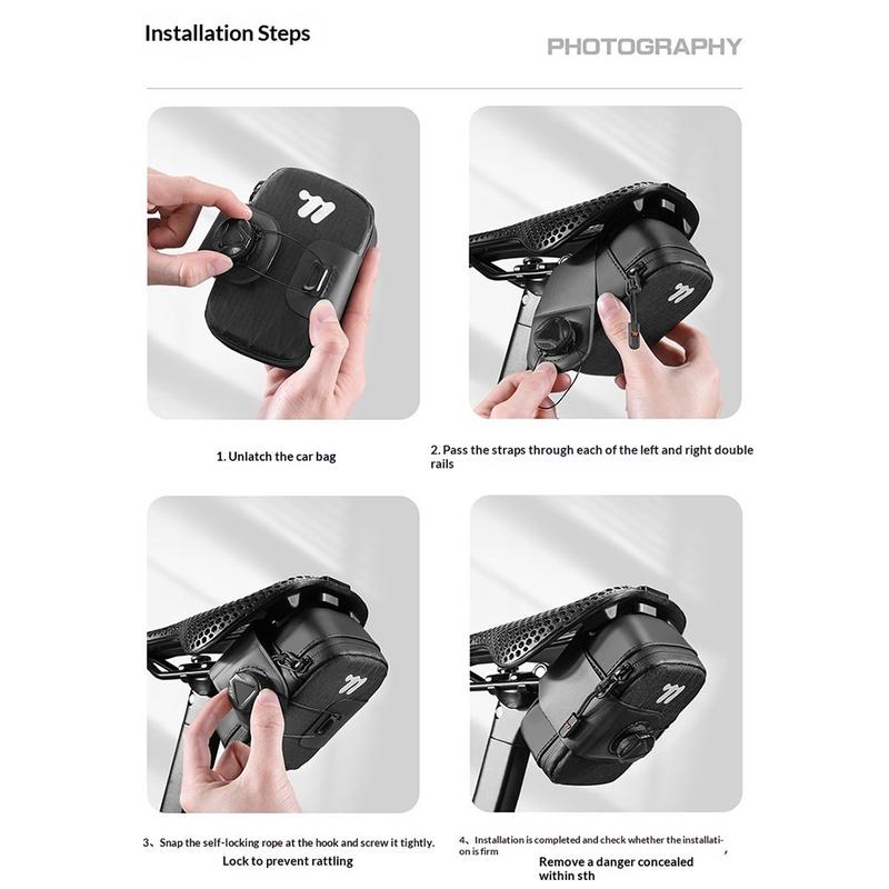 Denne sadeltaske er ideel til cyklister, der foretrækker letvægtsudstyr uden at gå på kompromis med funktionaliteten. Det sikre selvlåsende system sikrer, at tasken forbliver på plads, selv på ujævnt terræn, mens det kompakte opbevaringsrum på 0.2L holder vigtige genstande inden for rækkevidde. Den holdbare konstruktion gør den til en pålidelig ledsager til daglige ture og længere cykelture.