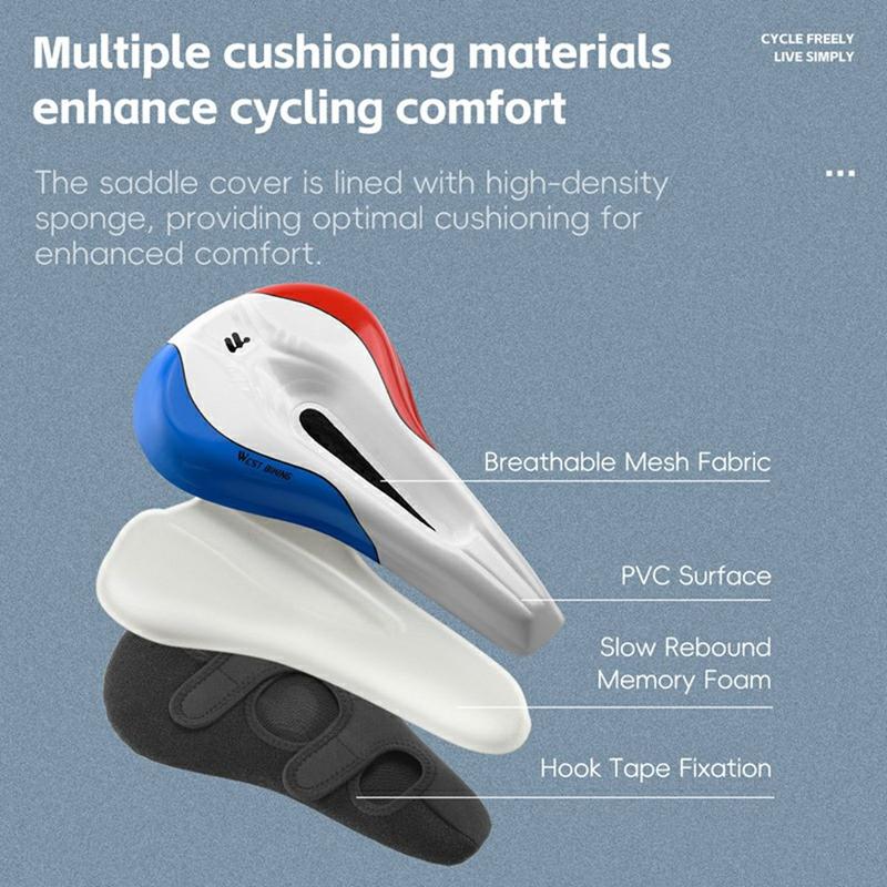 West Biking YP0801256 Memory Foam cykelsadelbetræk - Rød / Blå / Hvid