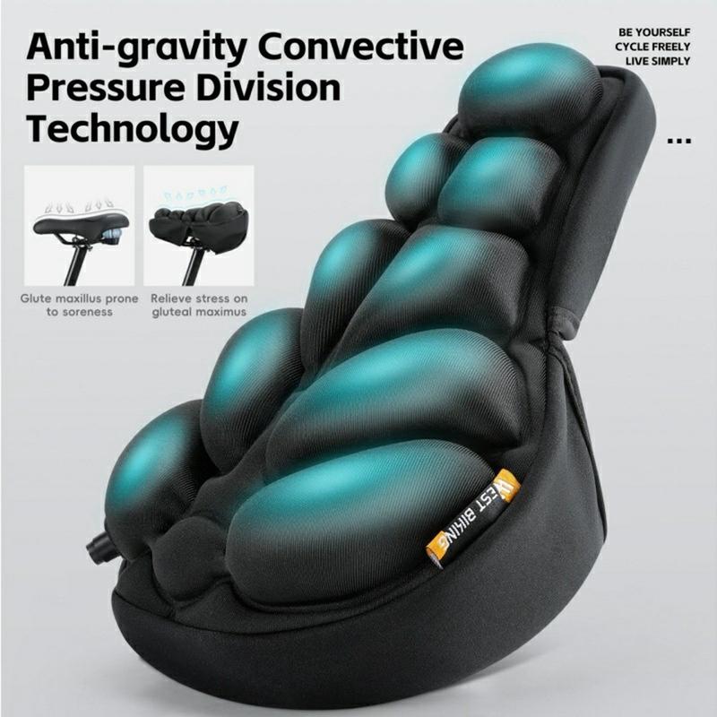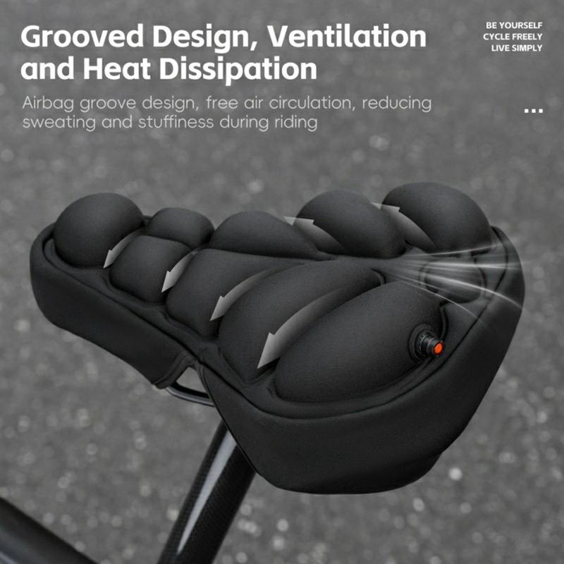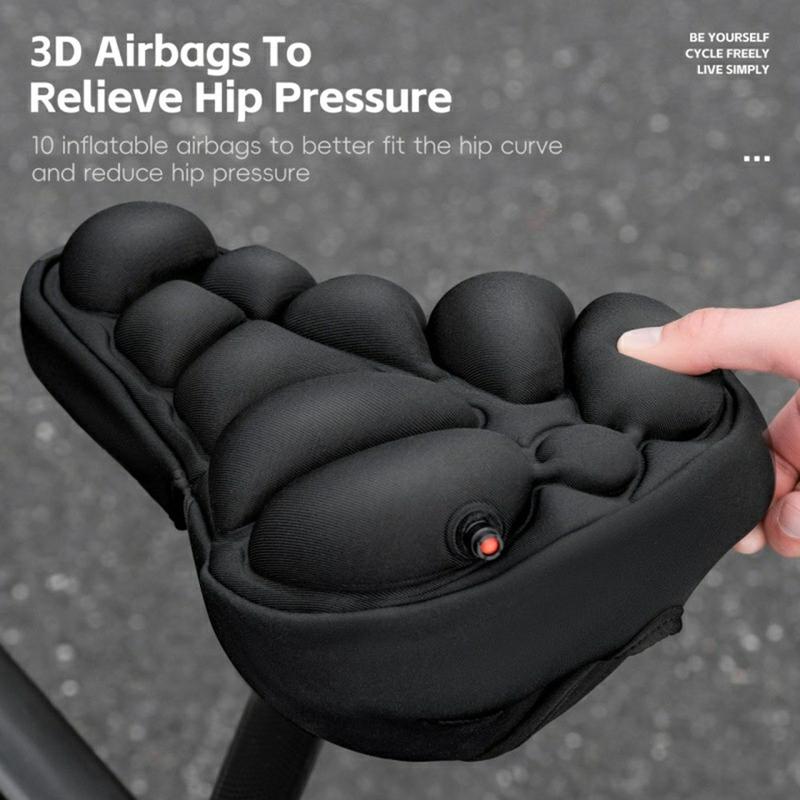 West Biking YP0801259 3D oppusteligt luftpude-cykelsædebetræk - justerbar trykaflastende stødsikker sadelunderlag med ventilation (27 cm x 16,5 cm)