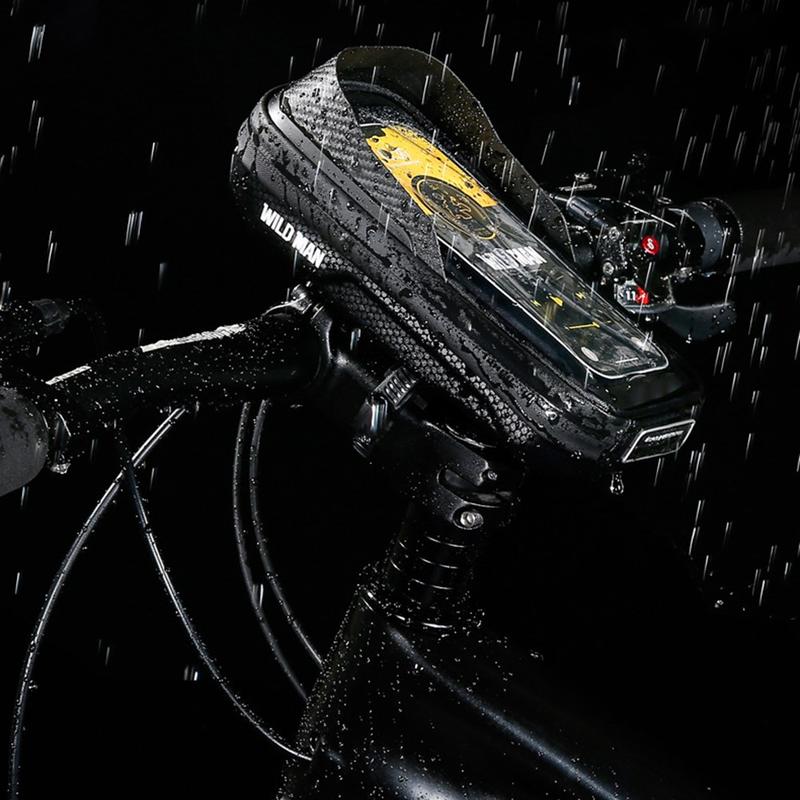 Wild Man E16 cykelstammeopbevaringspose - Hård EVA-cykelpose med TPU-berøringsskærm, vandtæt, reflekterende logo