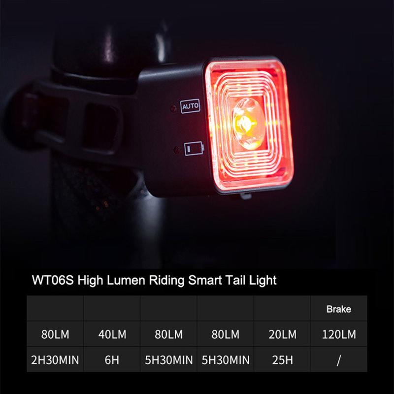 WIND&MOON WT06S intelligent cykel baglygte cykel smart sensor bremse USB genopladelig vandtæt baglygte lygte