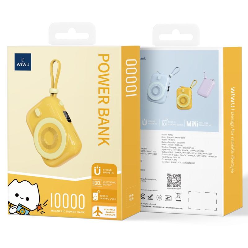 WIWU Wi-P041 Lille Snegl Magnetisk Trådløs Power Bank m. USB-C-kabel - 15W/9600mAh - Gul