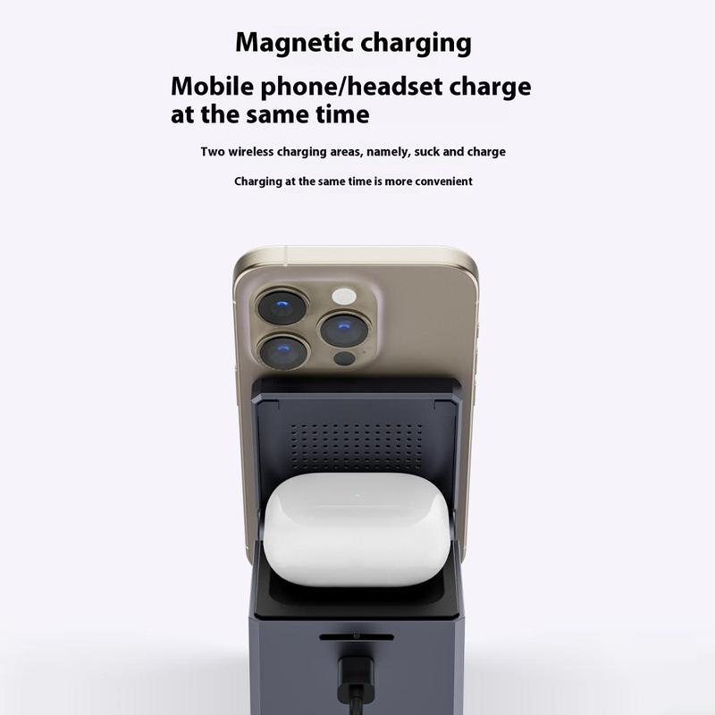 - 3-i-1-opladning: Understøtter samtidig opladning af iPhone, Apple Watch og AirPods.