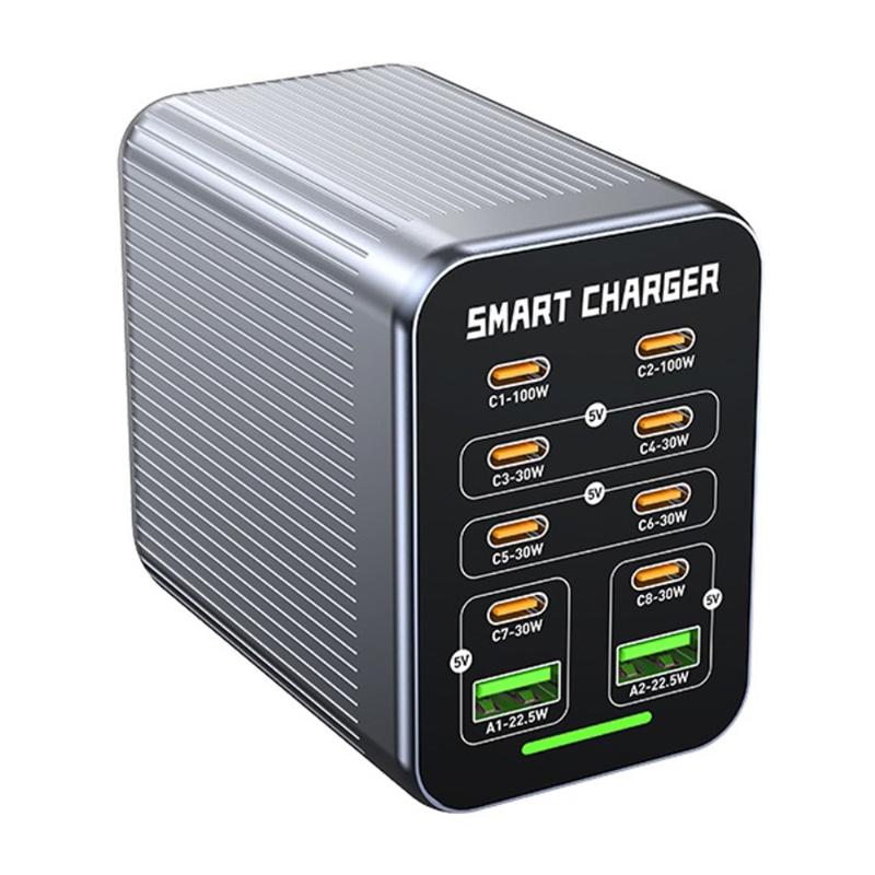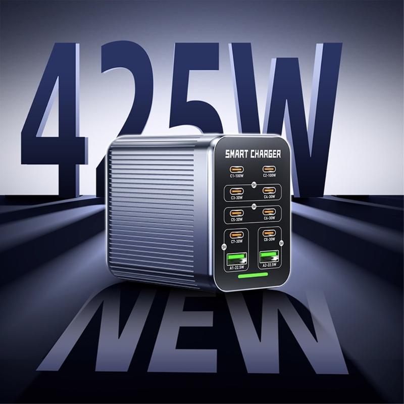 WLX-G1 425W GaN desktop-opladestation med 10 porte - hurtigoplader til flere enheder med PD/QC/PPS, intelligent ventilatorkøling, 100-240 V