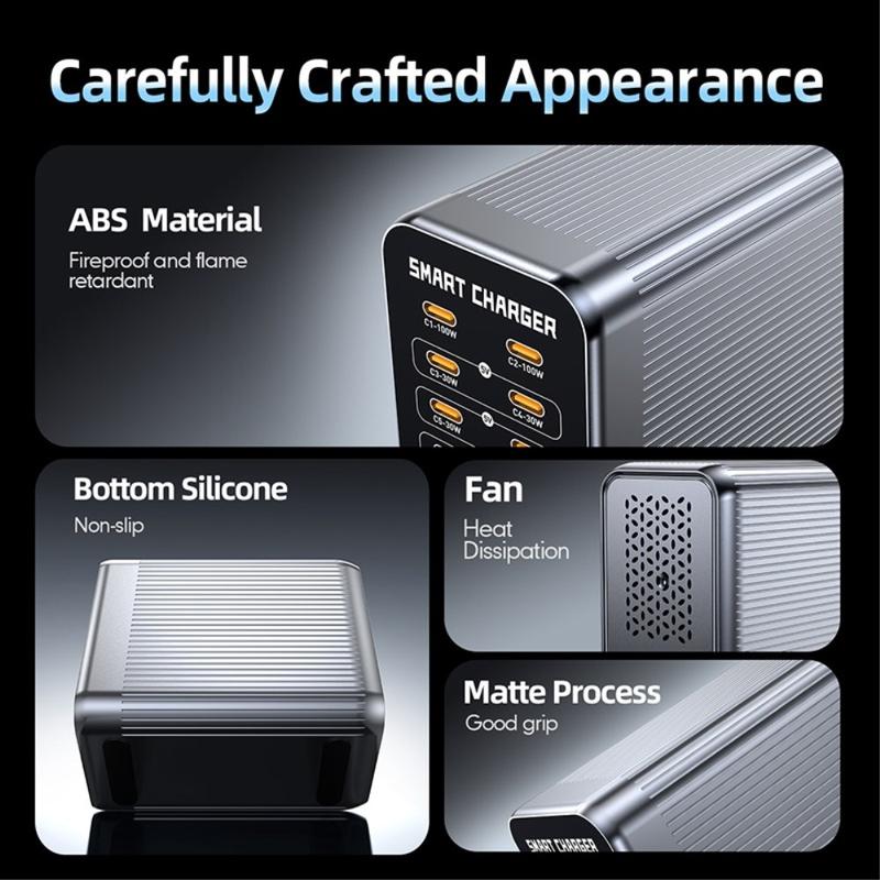 For at holde ydeevnen stabil under intensiv brug har WLX-G1 et intelligent ventilatorkølesystem med smart temperaturregulering. Den understøtter også almindelige hurtigopladningsstandarder som PD, QC og PPS, så kompatible enheder automatisk kan forhandle sig frem til optimale opladningshastigheder. Med en bred indgangsspænding på 100-240 V er den også en praktisk rejsekammerat til at oplade flere enheder på hoteller, i kontorfællesskaber eller på internationale arbejdsrejser.