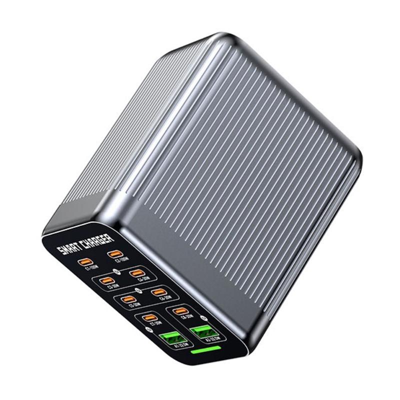 - 10 opladningsporte (USB-C + USB-A) til en komplet opladningsløsning til skrivebordet