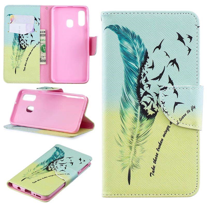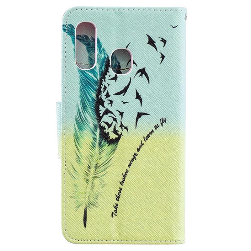 Wonder Series Samsung Galaxy A40 Pung med Stativ - Fjer