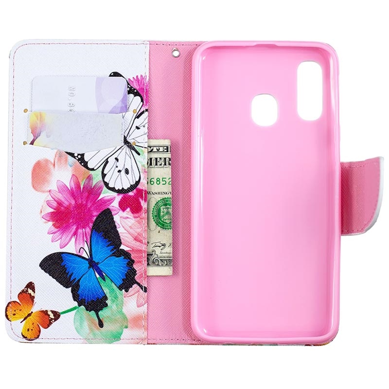 Wonder Series Samsung Galaxy A40 Pung med Stativ - Sommerfugle