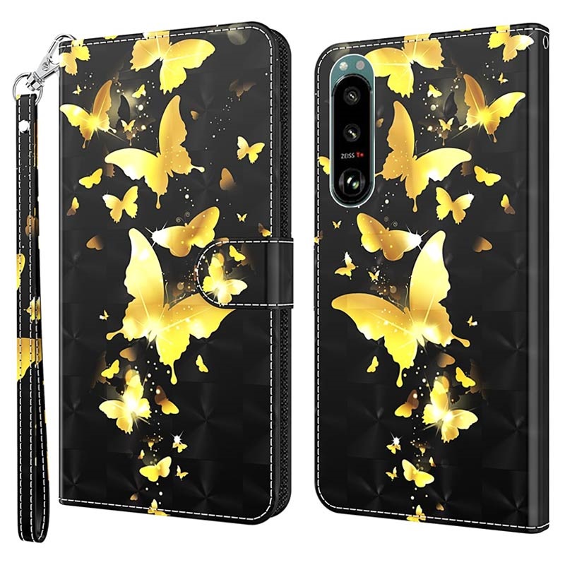 Wonder Series Sony Xperia 5 III Pung Taske - Guld Sommerfugl