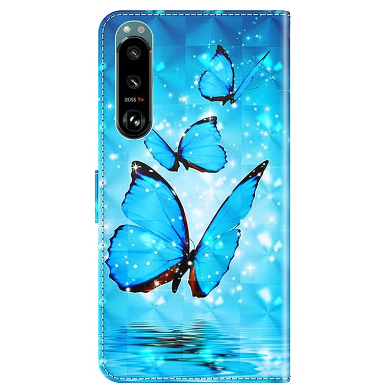 Wonder Series Sony Xperia 5 III Pung Taske - Blå Sommerfugl