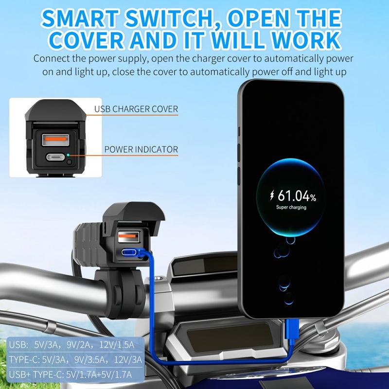 - Smart sikkerhedsbeskyttelse: Overspændings-, overstrøms- og kortslutningsbeskyttelse sikrer, at både dine enheder og motorcyklens elektriske systemer er beskyttet.