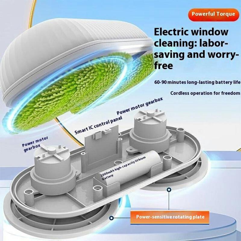 - Dobbelte rengøringspuder for effektivitet - Udstyret med dobbelte motoriserede rengøringshoveder, der fordobler rengøringsområdet og reducerer tiden betydeligt for store eller høje overflader.