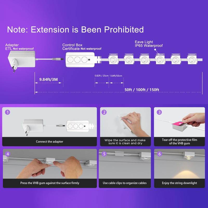 Forvandl dit uderum med WY021 smart udendørs tagudhængslampe, en RGBIC LED-lyskæde, der kombinerer smart teknologi, levende farver og holdbart vandtæt design. Den er perfekt til haver, altaner, terrasser eller festlige dekorationer og forener atmosfære og funktionalitet - alt sammen styret direkte fra din telefon.