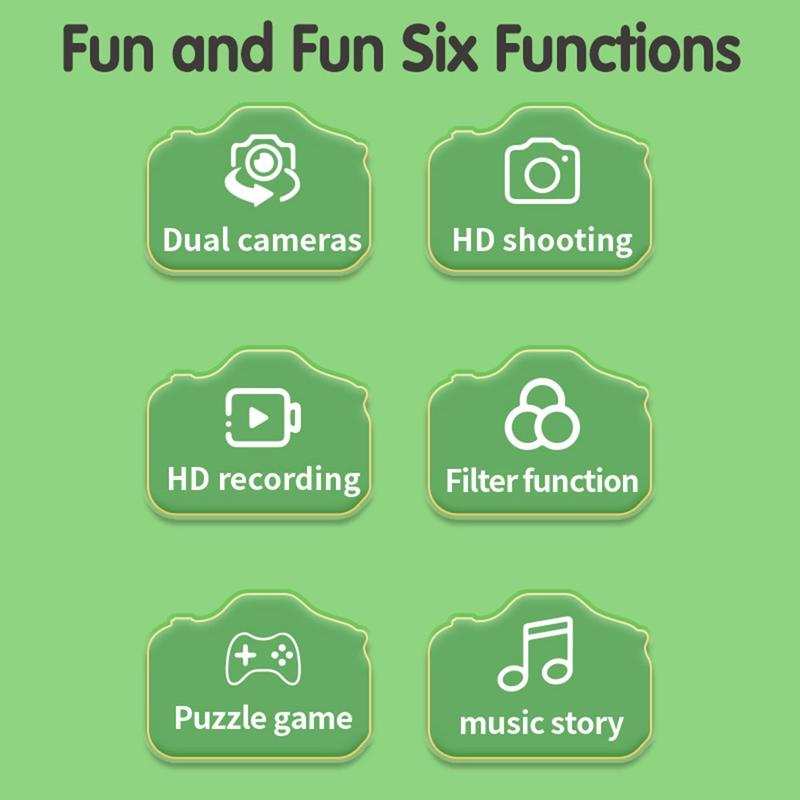 X12S Kids Camera er en spændende og alsidig gadget, der er designet til at skabe kreativitet og sjov for unge fotografer. Dette CE-certificerede kamera har et charmerende dragedesign og tilbyder flere funktioner, herunder fotooptagelse, videooptagelse, musikafspilning og spil. Det er kompakt og børnevenligt og er den perfekte ledsager for små eventyrere.