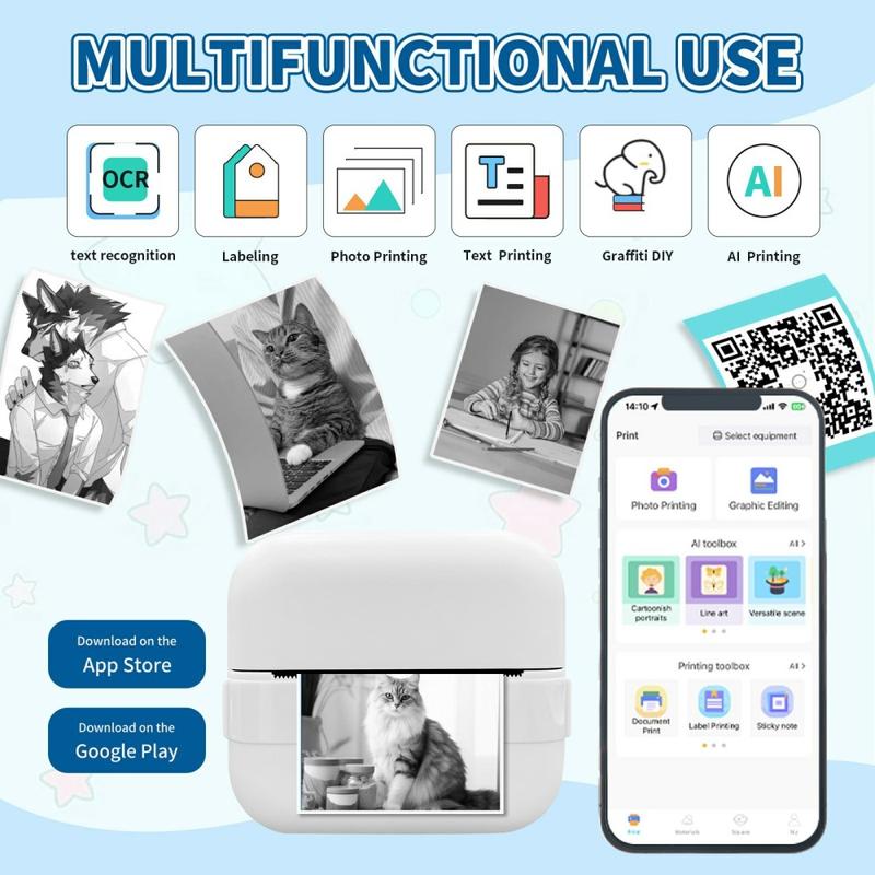 X18 Mini Lomme Blækfri Termisk Printer - 200 DPI Bluetooth, Type-C & 800 mAh batteri