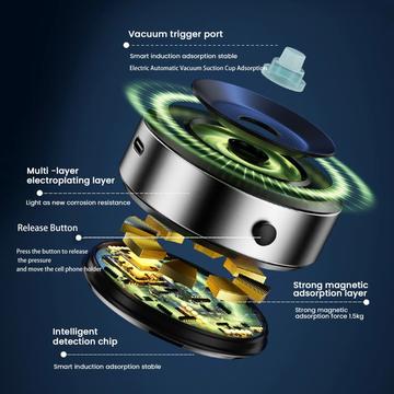 X8Q Vakuum/Magnetisk Mobilholder til Bilens Instrumentbræt - automatisk vakuumsugefunktion