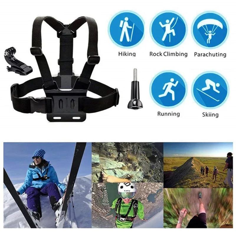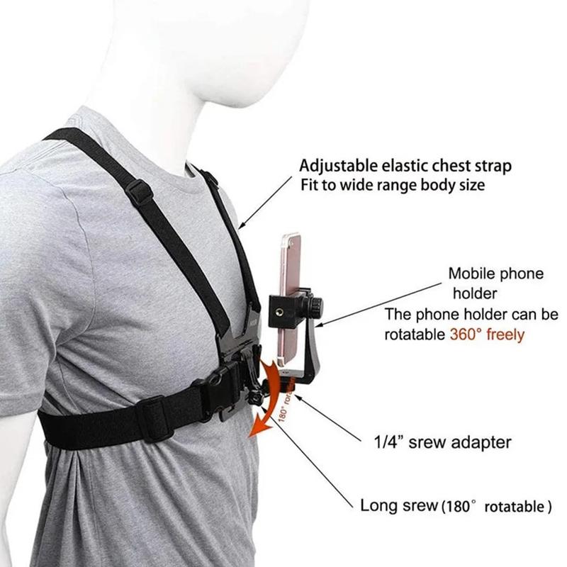 XD-27 Actionkamera-brystholder med telefonholder - justerbart nylonbrystbælte til GoPro og smartphones