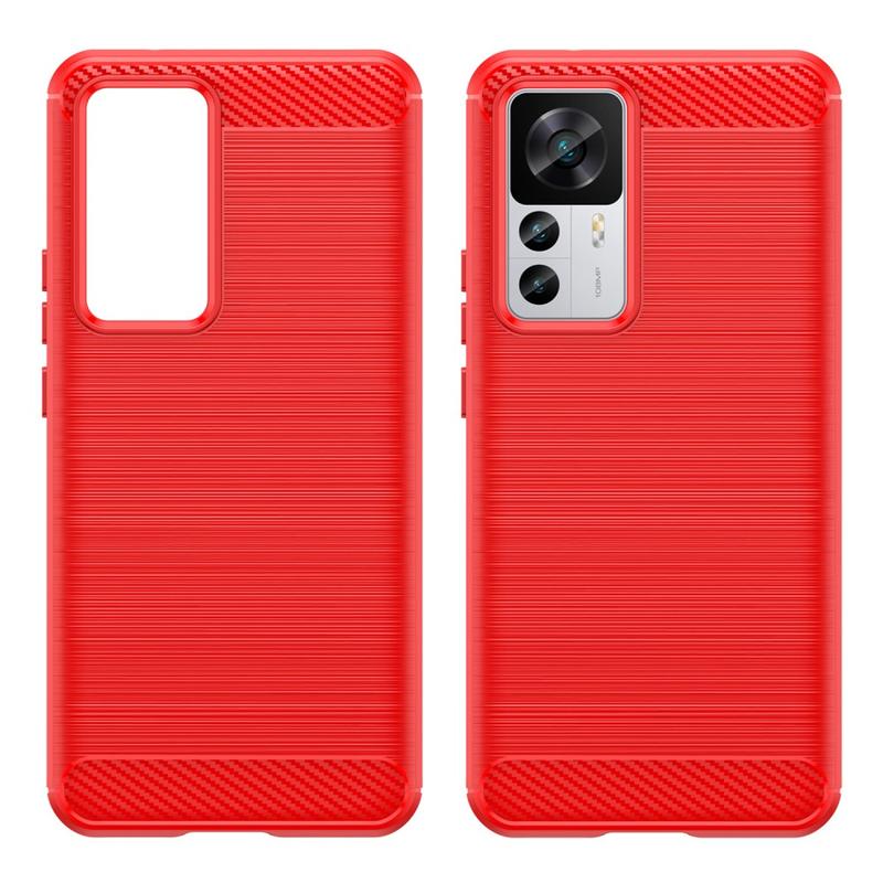 Xiaomi 12T/12T Pro Børstet TPU Cover - Karbonfiber - Rød