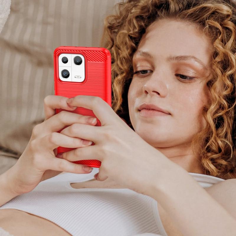 Xiaomi 13 Børstet TPU Cover - Karbonfiber - Rød