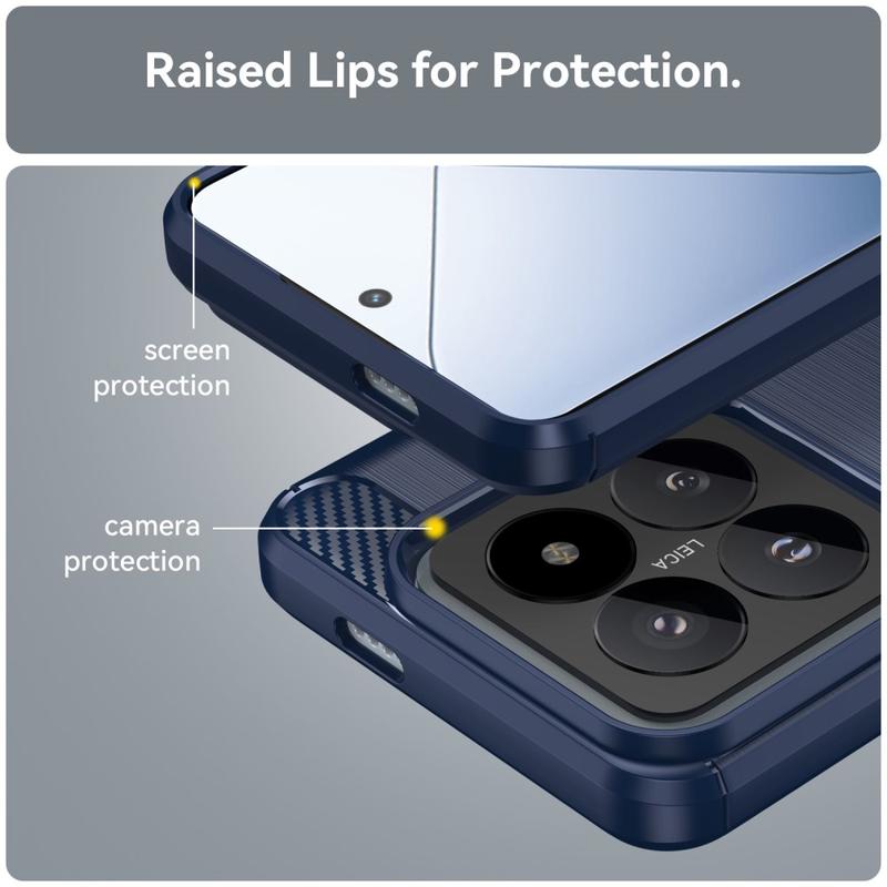 Xiaomi 14 Pro Børstet TPU Cover - Karbonfiber - Blå