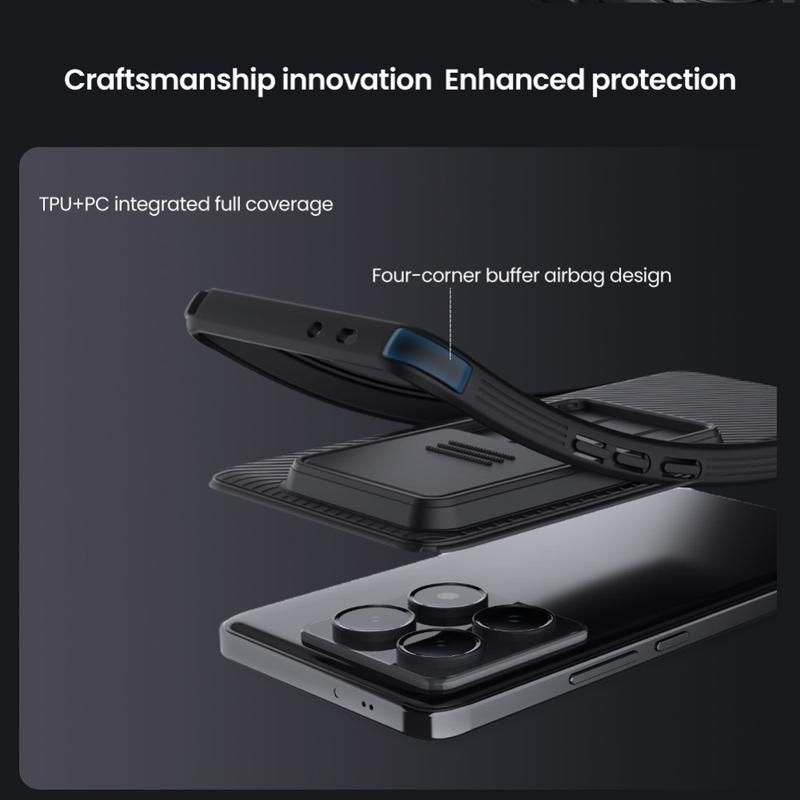 Få mere privatliv og beskyttelse med et Nillkin CamShield Pro hybridcover. Den kombinerer hård plastik og TPU, så kameracoveret forhindrer ridser, mens det beskytter din Xiaomi 14T Pro mod dagligdagens slitage.