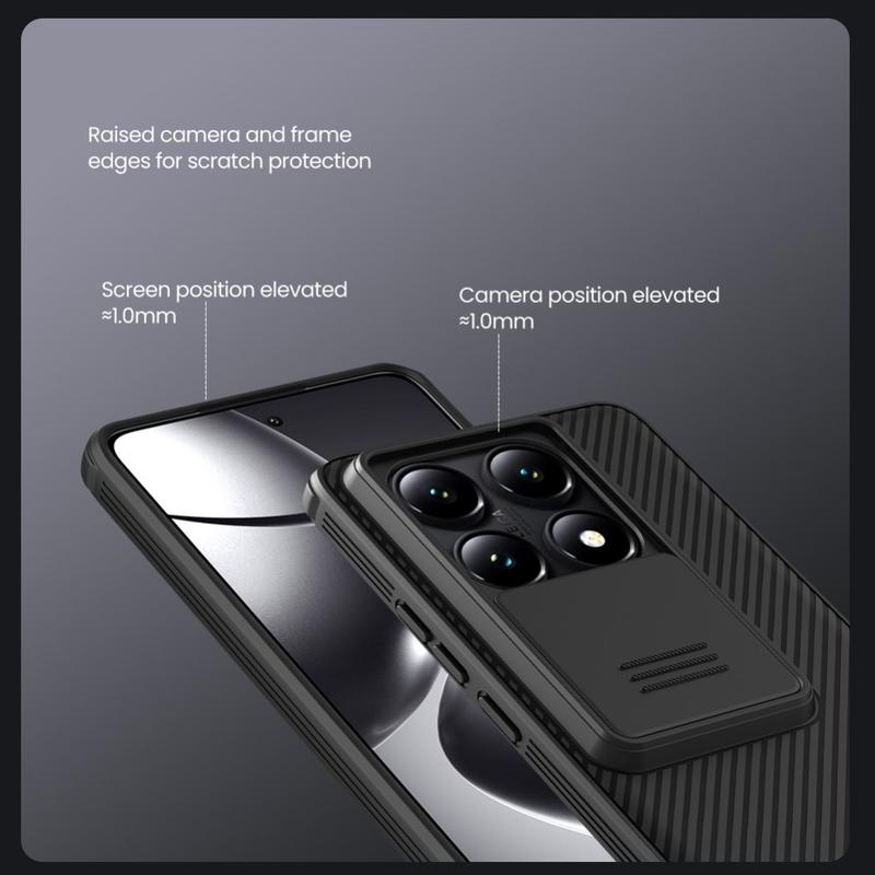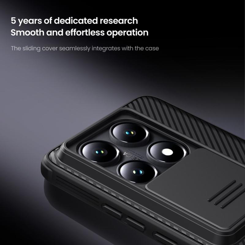 Få mere privatliv og beskyttelse med et Nillkin CamShield Pro hybridcover. Den kombinerer hård plastik og TPU, så kameracoveret forhindrer ridser, mens det beskytter din Xiaomi 14T Pro mod dagligdagens slitage.