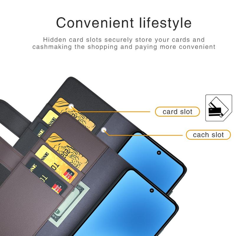 Dette læderpung cover er ideelt til forretningsfolk, der ønsker at kombinere stil og funktionalitet. Med plads til kreditkort og kontanter kan du nemt efterlade din pung derhjemme og kun tage din telefon med dig. Det er også perfekt til rejsende, der ønsker at holde deres værdigenstande sikre og organiserede. For dem, der ofte ser videoer eller deltager i videoopkald, er stativfunktionen en praktisk tilføjelse, der gør det nemt at nyde indhold håndfrit.