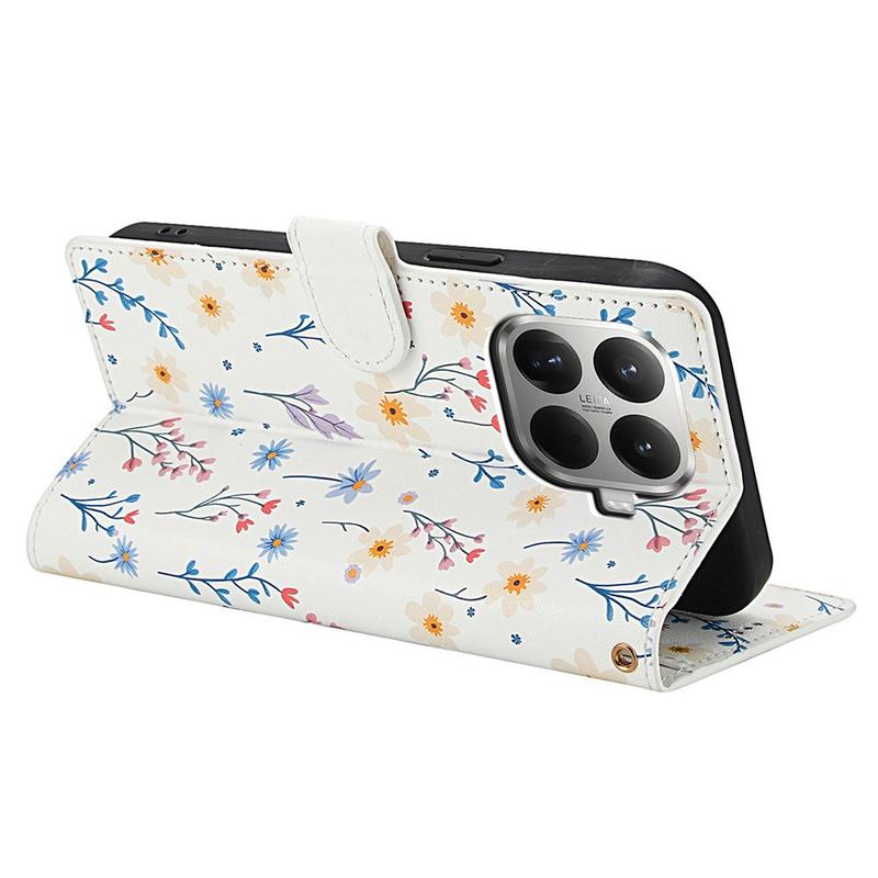 Rhombisk Blomsterpung til Xiaomi 15T Pro - med rem og kortholdere