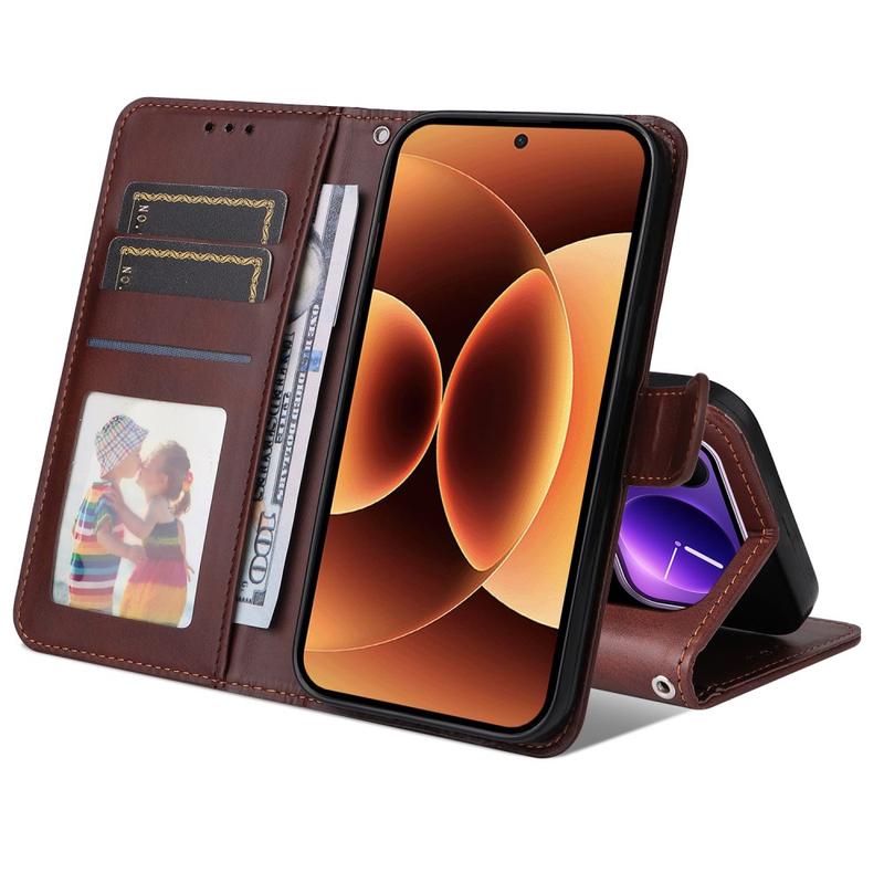 Giv din nye Xiaomi 17 Pro Max et raffineret vintage-look, mens du erstatter din daglige pung. Ydersiden i polyuretan med Crazy Horse-tekstur kombineres med en stødabsorberende TPU-skal for at beskytte mod fald og ridser, mens smarte lommer holder styr på kort og kontanter.