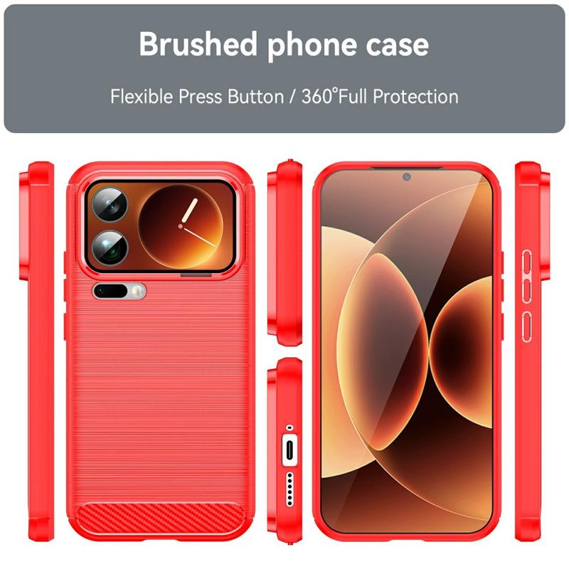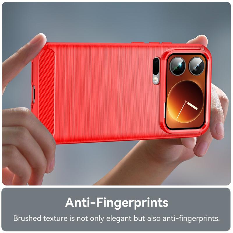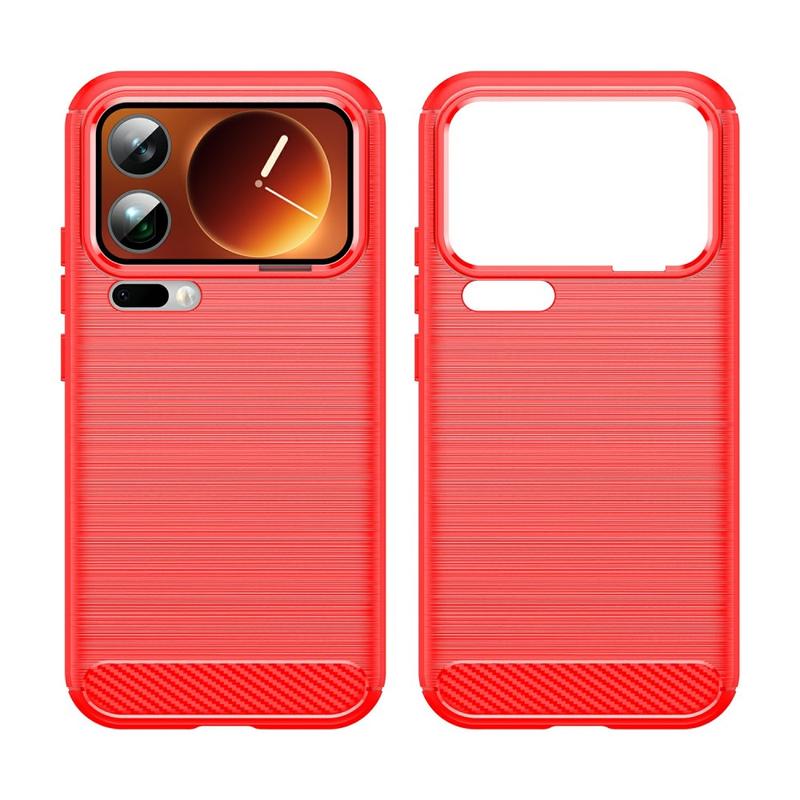 Xiaomi 17 Pro Max Børstet TPU Cover - Karbonfiber - rød