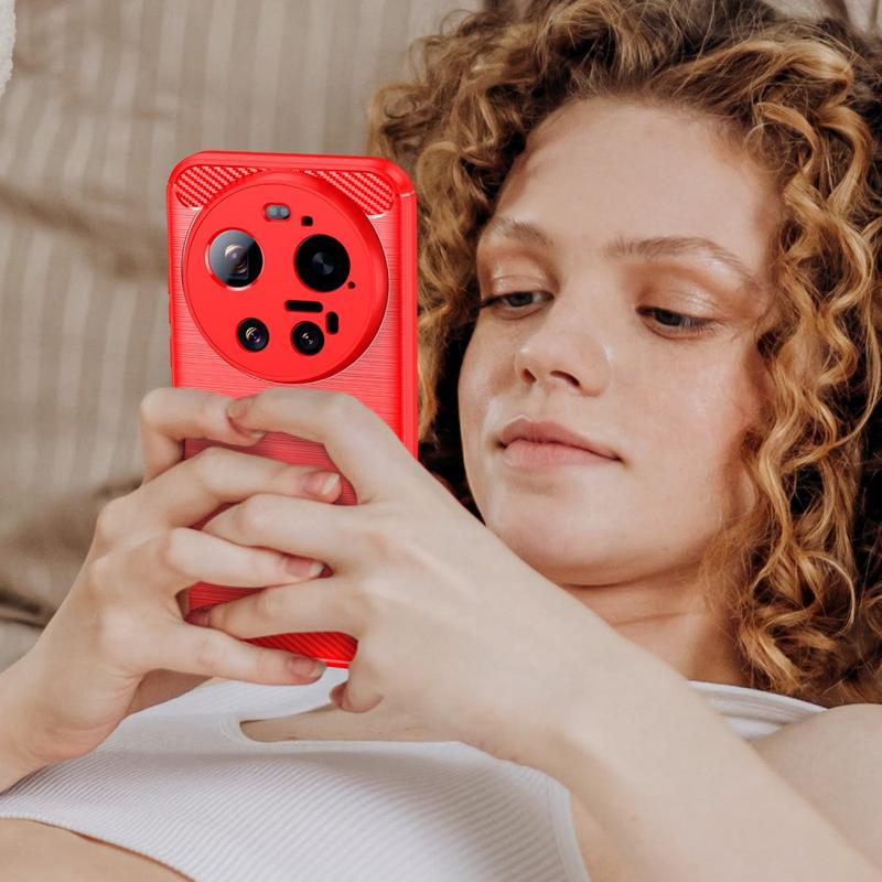 Xiaomi 17 Ultra Børstet TPU Cover - Karbonfiber - rød