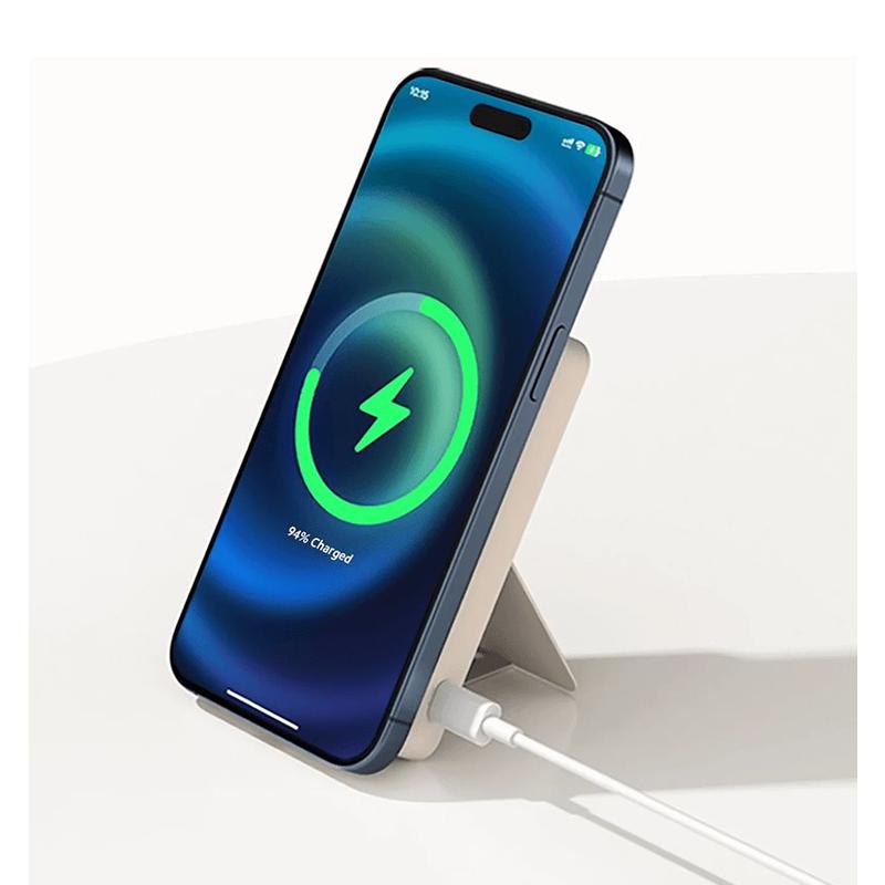 Powerbanken understøtter trådløs Qi 2.0-hurtigopladning på op til 15 W og leverer jævn, effektiv og stabil opladning takket være præcis magnetisk justering. Den tovejs USB-C-port giver mulighed for samtidig kablet og trådløs opladning, så du kan sætte strøm til din telefon, mens selve powerbanken oplades - ideelt til travle dage, rejser og brug på farten.