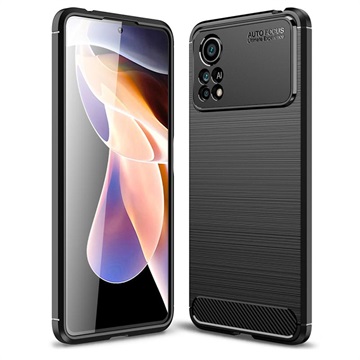 Xiaomi Poco X4 Pro 5G Børstet TPU Cover - Karbonfiber - Sort