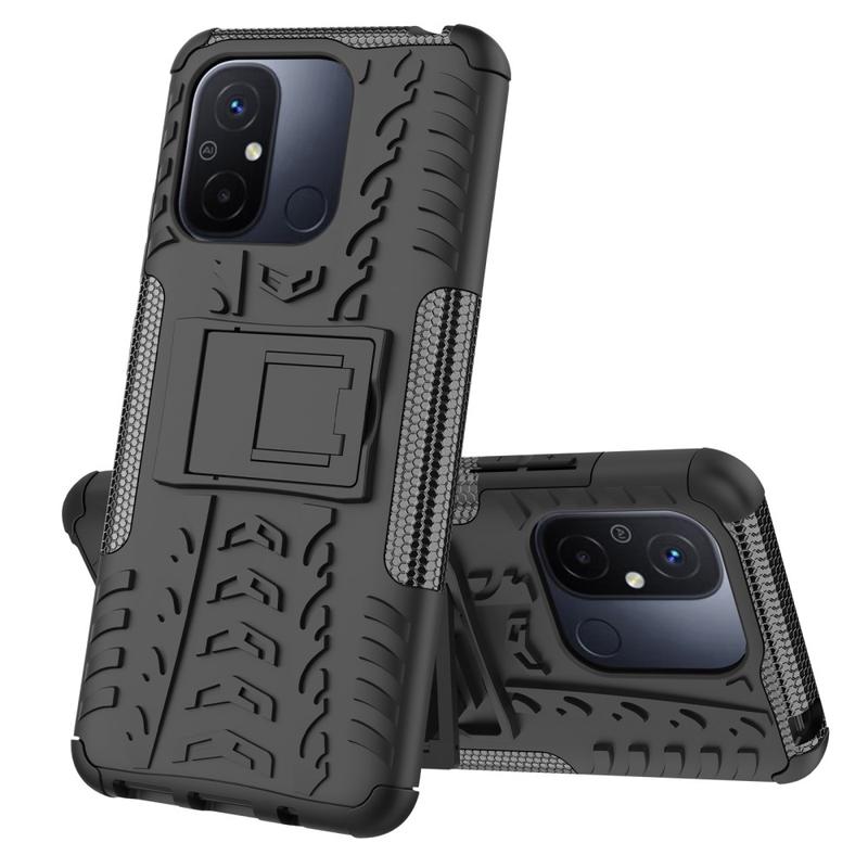 Xiaomi Redmi 12C, Poco C55 Anti-Slip Hybrid Cover med Stativ - Sort