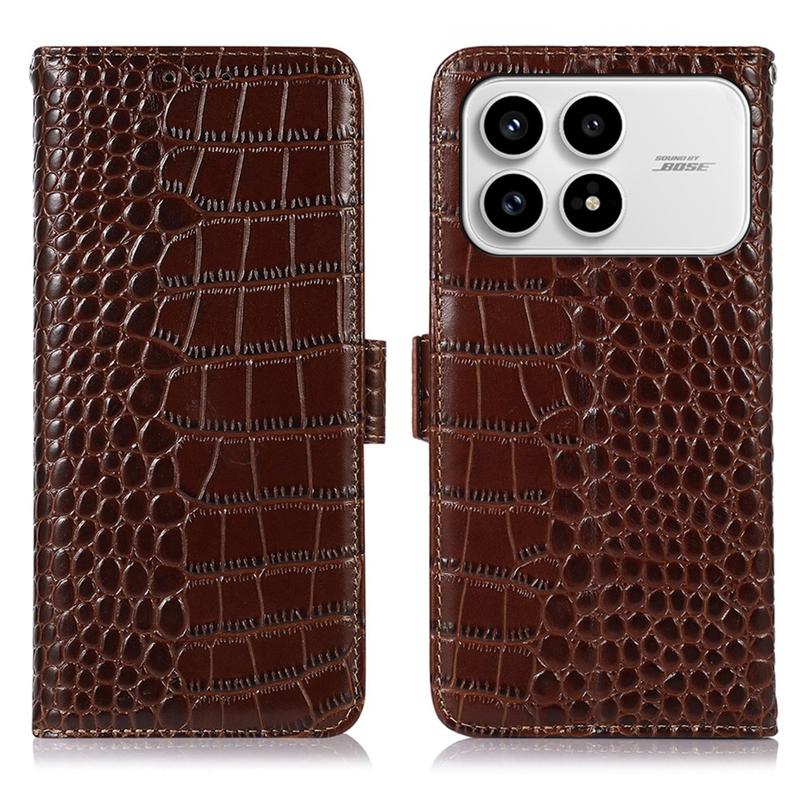 Xiaomi Redmi K90/Poco F8 Pro Crocodile Series Læderpung med RFID - Brun