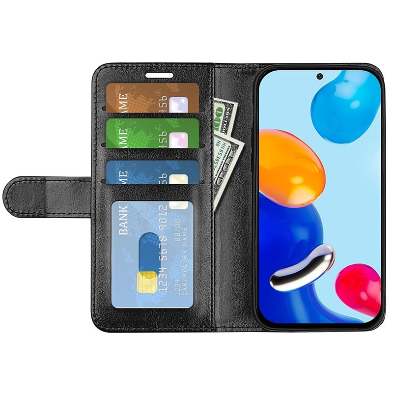 Den er lavet af let polyuretan og har rum til kort indvendigt, en lomme til kontanter samt et ekstra TPU cover til din Xiaomi Redmi Note 11, Redmi Note 11S. Den beskytter effektivt mod skader og er udstyret med en sammenfoldelig klar foran, så du kan opstille din Xiaomi Redmi Note 11, Redmi Note 11S i en komfortabel synsvinkel.