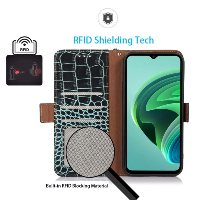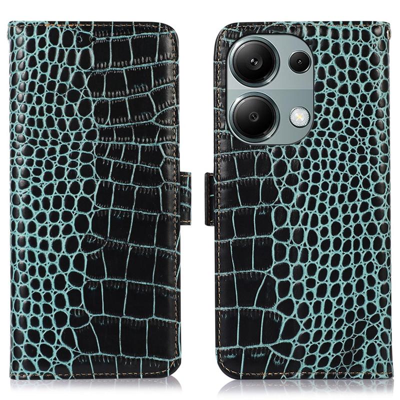 Xiaomi Redmi Note 13 Pro 4G/Poco M6 Pro Crocodile Series Læderpung med RFID - Grøn