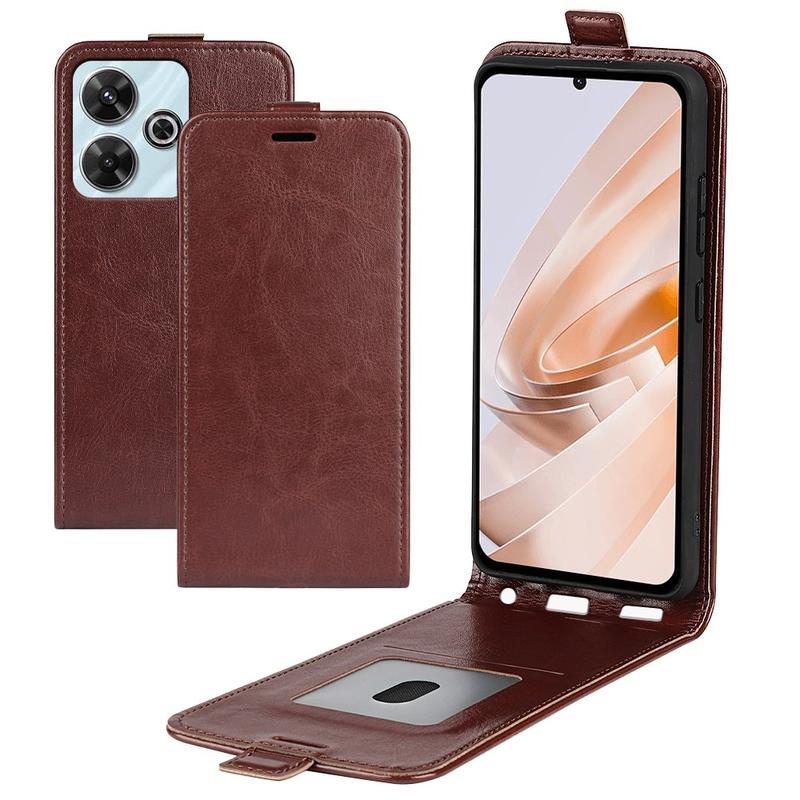 Xiaomi Redmi Note 13R/Redmi 13/Poco M6 4G Vertikal Flip Taske med Kortholder - Brun