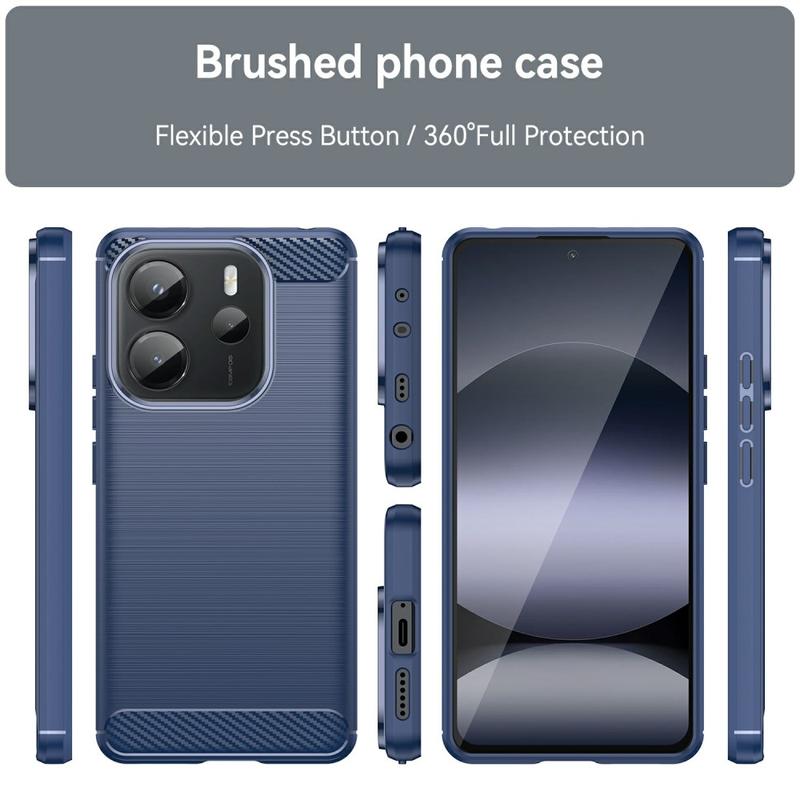 Xiaomi Redmi Note 14 4G Børstet TPU Cover - Karbonfiber - Blå