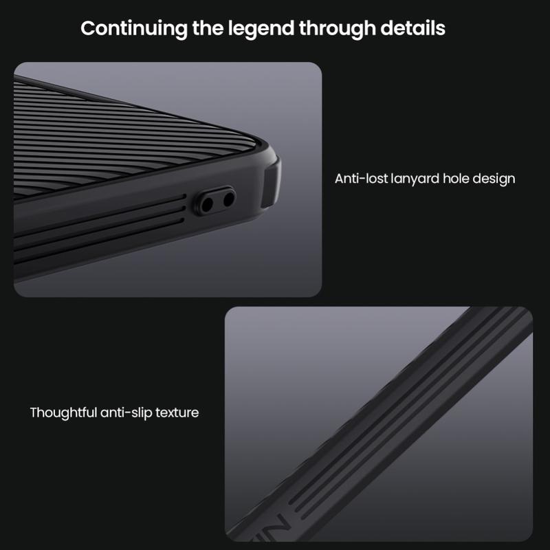 - Dette ekstraordinære Nillkin CamShield Prop hybridcover er lavet af plastik og TPU-materialer