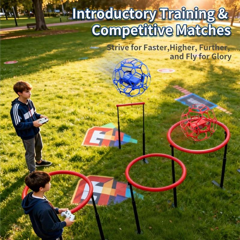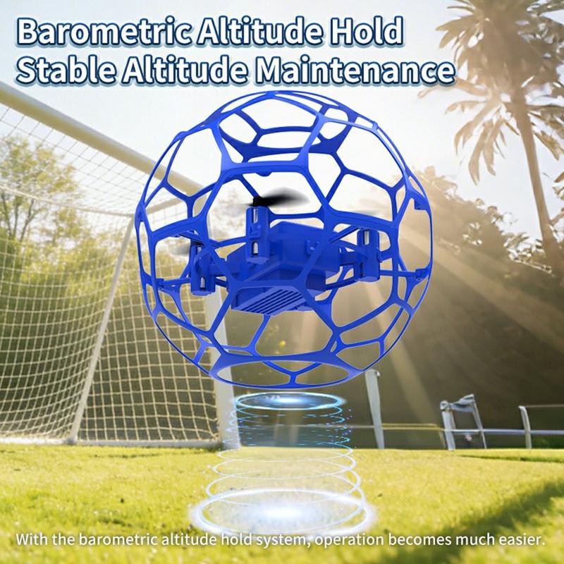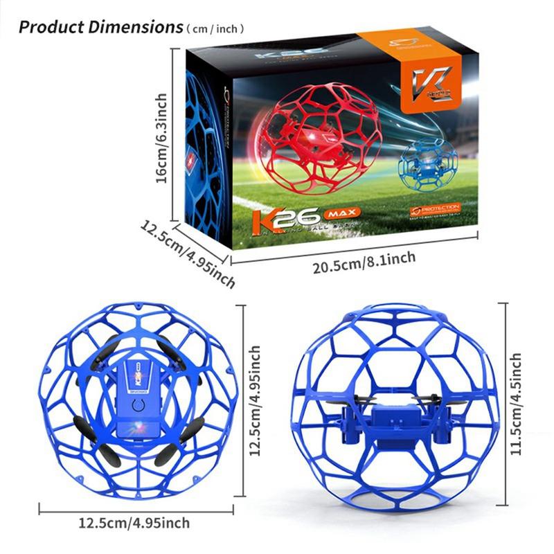 XKJ K26 fodboldlignende drone er en letvægts quadcopter med flyvende bold, der er designet til sikker og spændende leg. Dens sfæriske, beskyttende netstruktur omgiver propellerne, hvilket hjælper med at reducere risikoen for kollisioner og gør den velegnet til børn og førstegangsbrugere af droner, både indendørs og udendørs.