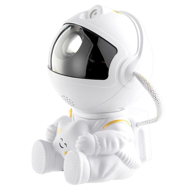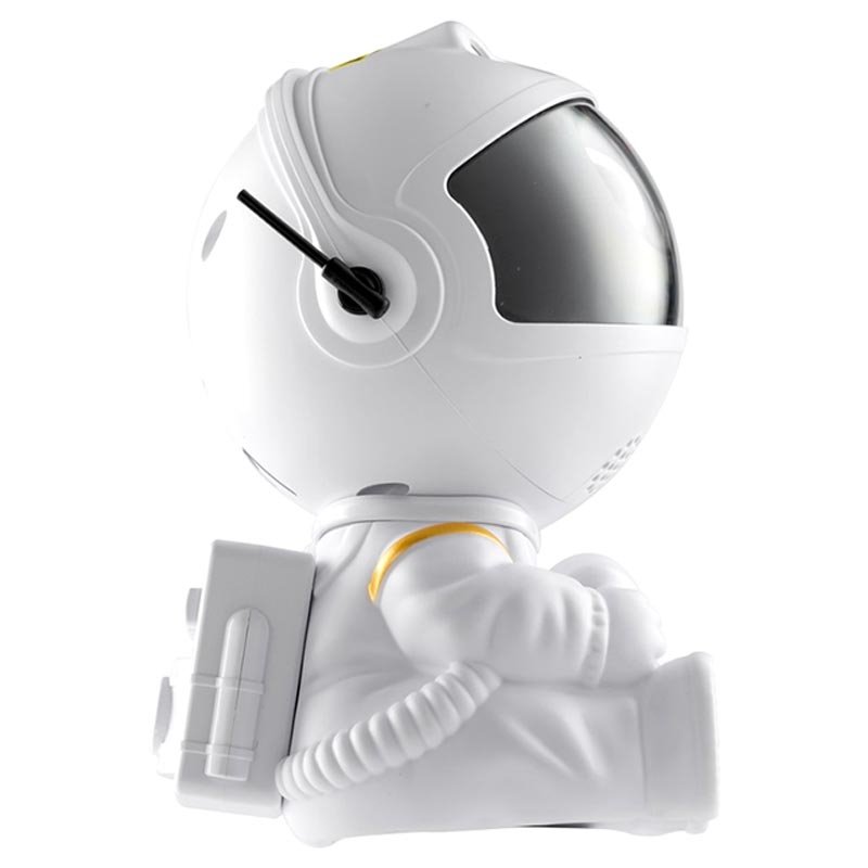 projektionslampe, der viser livlige og bevægelige mønstre af galakser og laserstjerner. Den leveres med en fjernbetjening, der giver dig mulighed for at justere lysintensiteten og skifte mellem forskellige viste billeder. Placeret i astronautens magnetiske hoved tillader projektoren nem justering af lysets vinkel. Denne gadget fungerer via en USB-kabel til praktisk strømforsyning.
